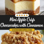 These Apple Crisp Mini Cheesecakes combine a buttery graham cracker crust, creamy cheesecake filling, spiced apple topping, and a crunchy cinnamon-oat crumb topping. Perfectly portioned in cupcake liners, these individual desserts offer a delightful blend of textures and flavors, finished with a drizzle of caramel sauce for an extra touch of sweetness.