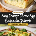 This Cottage Cheese Egg Bake is a protein-packed, savory breakfast dish perfect for busy mornings or meal prep. Featuring a fluffy combination of eggs, creamy cottage cheese, Parmesan, fresh spinach, and onions, it delivers a nutritious, flavorful start to your day. Baked to perfection, this egg casserole offers a satisfying texture and can be customized with additional veggies or breakfast meats to suit your taste.