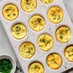 - Fill muffin cups: Pour the blended egg mixture evenly into the prepared muffin cups, filling each about half full. Sprinkle the chopped fresh chives on top. Feel free to add mix-ins like diced veggies or bacon at this stage if you like.