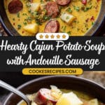 This hearty Cajun Potato Soup combines spicy and smoky andouille sausage with tender russet potatoes in a creamy, flavorful broth. Loaded with aromatic vegetables and a blend of Cajun spices, this comforting soup is perfect for warming up on chilly days and serves six generously.