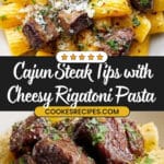 This Cajun Steak Tips in Cheesy Rigatoni recipe combines tender, flavorful steak cubes seasoned with spicy Cajun seasoning with a creamy, indulgent Parmesan and cheddar cheese sauce served over perfectly cooked rigatoni pasta. It’s a rich, comforting dish that balances bold spices with cheesy goodness for a satisfying meal.