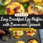 These Breakfast Egg Muffins are a delicious and convenient way to enjoy a protein-packed morning meal. Packed with crispy bacon, sautéed potatoes and onions, fresh spinach, and mild cheddar cheese, all combined with eggs and a hint of Tabasco for a subtle kick, these muffins are baked to golden perfection. Perfect for meal prepping or a quick breakfast on the go, they bake in a muffin tin for easy portioning and cleanup.