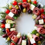 This Charcuterie Wreath is a stunning antipasto centerpiece perfect for gatherings. It features a colorful assortment of cured meats, cheeses, olives, pickled vegetables, and fresh herbs arranged beautifully on toothpicks in a wreath shape. Easy to assemble and visually impressive, this recipe combines savory, tangy, and fresh flavors for a delightful appetizer.