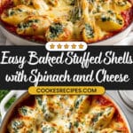 Delicious baked stuffed shells filled with a creamy mixture of ricotta, mozzarella, Parmesan, spinach, and seasonings, all smothered in marinara sauce and topped with melted cheese. This classic Italian-American dish is perfect for a comforting family meal or dinner party.
