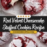 Cheesecake-Stuffed Red Velvet Cookies combine the rich, creamy texture of classic cheesecake with the soft, decadent flavor of red velvet cookies. These delicious treats feature a smooth cheesecake filling encased in moist red velvet cookies dusted with powdered sugar, perfect for parties or a special dessert.