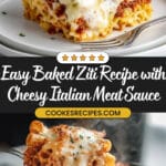 This Easy Baked Ziti is a comforting Italian-American classic featuring tender pasta baked with a savory meat sauce, creamy ricotta, and a gooey mozzarella and Parmesan cheese topping. Perfect for family dinners, it combines ground beef or Italian sausage with rich marinara, layered with cheeses, and baked to bubbly, golden perfection.
