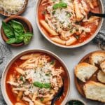 This comforting Chicken Parmesan Soup combines tender shredded chicken, hearty vegetables, and classic Italian flavors in a rich tomato broth. Slow-cooked to meld flavors, then finished with mozzarella, Parmesan, and fresh basil, it’s a warm and satisfying twist on the beloved chicken Parmesan dish served as a cozy soup.