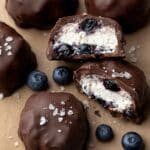 Delight in these Chocolate Dipped Blueberry Cottage Cheese Clusters, a perfect balance of creamy cottage cheese, juicy blueberries, crunchy pecans, and rich dark chocolate. These bite-sized clusters are lightly sweetened with maple syrup and enhanced with vanilla extract, making them a wholesome and satisfying snack or dessert. Coated in smooth dark chocolate with a touch of sea salt, they offer a delicious combination of flavors and textures that are both refreshing and indulgent.