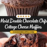 Deliciously moist and chocolatey Double Chocolate Chip Cottage Cheese Muffins made with protein powder, coconut sugar, and cottage cheese for a soft, tender crumb. These muffins are perfect as a healthy breakfast or snack with a rich chocolate flavor and gooey chocolate chips in every bite.
