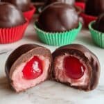 Delightfully rich and luscious Chocolate Covered Cherries featuring maraschino cherries encased in a smooth fondant center, all enveloped in a glossy, decadent chocolate coating. Perfect for gifting or special occasions, these homemade cordials balance sweet fruitiness with creamy chocolate and a syrupy center made by allowing the fondant to liquefy over time.