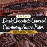 Delightfully sweet and tangy jellied cranberry sauce slices coated in smooth dark chocolate, creating a perfect bite-sized holiday treat that balances fruity tartness with rich chocolate flavor.