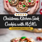These Christmas Kitchen Sink Cookies are festive, chewy, and loaded with an irresistible combination of M&M’s, white chocolate chips, pretzels, potato chips, and colorful sprinkles. Perfect for holiday gatherings, these cookies offer a delightful mix of sweet, salty, and crunchy textures baked to perfection with a buttery, soft center.