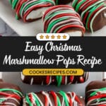 Delightful Christmas Marshmallow Pops featuring three marshmallows on each lollipop stick, dipped in smooth Ghirardelli chocolate and decorated with festive red, white, and green candy melts. A fun and easy holiday treat to make and share.