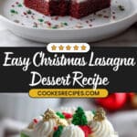 This festive Christmas Lasagna Dessert layers moist red velvet cake, a creamy cream cheese mixture with crushed candy canes, a vibrant green vanilla pudding, and fluffy Cool Whip, creating a delightful no-bake holiday treat perfect for gatherings. The dessert combines classic holiday flavors with a fun, colorful presentation and is chilled to perfection for a refreshing finish.