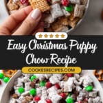 For parties, I’ve served this puppy chow in cute holiday-themed mason jars tied with ribbon as edible gifts. Another fun idea is scooping it into mini paper cones or holiday treat bags for easy grab-and-go snacking—everyone loves that festive look with minimal fuss.