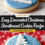These Easy Decorated Christmas Shortbread Cookies are buttery, tender, and perfect for holiday gifting and celebrations. The cookies are flavored with vanilla and have a delicate crumb thanks to the addition of cornstarch. They are topped with a peppermint-flavored mint glaze dyed a festive blue and piped with a creamy peppermint buttercream to create charming Christmas tree decorations. Ideal for cookie exchanges and festive gatherings.