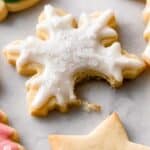 - Cut cookies: Remove dough from fridge and separate layers carefully. Use cookie cutters to cut shapes. Re-roll scraps as many times as needed to use all dough. Arrange cookies 3 inches apart on prepared baking sheets.