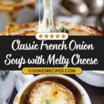 This classic French Onion Soup recipe features slowly caramelized onions simmered in a rich beef broth, topped with toasted crusty French bread and melted Gruyere and mozzarella cheeses. Perfect as a comforting appetizer or a hearty meal, this soup combines deep, sweet onion flavors with a cheesy, golden crust.