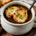 This classic French Onion Soup recipe features deeply caramelized onions, rich beef and chicken broth, and a crisp, cheesy baguette topping. Slow-cooked to develop complex flavors, it’s the perfect comforting dish for cooler weather or any time you crave a savory, hearty soup.