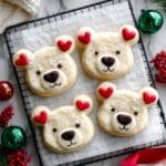 These Soft-Batch Polar Bear Cookies are a delightful treat featuring tender cream cheese cookies topped with creamy buttercream frosting and decorated with sanding sugar and chocolate for a fun polar bear design. Perfectly soft, buttery, and lightly sweetened, they are ideal for holiday celebrations, kids’ parties, or any special occasion where a whimsical cookie is welcome.