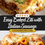 This classic Baked Ziti recipe features tender pasta tossed in a rich and creamy tomato sausage sauce, layered with ricotta, parmesan, and mozzarella cheeses, then baked to bubbly perfection with a golden cheesy top. Perfect for family dinners or entertaining, it combines hearty Italian flavors with simple preparation.