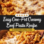 This 35-Minute One-Pot Creamy Beef Pasta is a hearty and delicious meal perfect for busy weeknights. Ground beef is cooked with Italian seasoning, onions, and garlic, then simmered in a savory tomato and beef broth sauce along with pasta until tender. Finished with rich heavy cream and Parmesan cheese, this creamy pasta dish is both comforting and satisfying, all made easily in one pot for minimal cleanup.