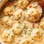 - To ensure even cooking of dumplings, form them into uniform sizes using a small cookie scoop or spoon and roll them gently between your hands.
