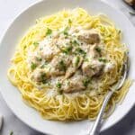 Crock Pot Angel Chicken is a creamy, comforting dish featuring tender seared chicken breasts slow-cooked in a rich cream cheese and cream of chicken soup sauce, flavored with garlic and Italian seasoning. Served over delicate angel hair pasta, this easy crock pot recipe makes a perfect weeknight dinner with minimal prep and maximum flavor.