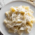 - The cream sauce will thicken quickly as it cools; add a splash of heavy cream or leftover pasta water to loosen it if needed before serving.