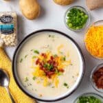- Serve and Garnish: Ladle soup into bowls and top with shredded cheese, bacon, and scallions as desired. Season with salt and pepper to taste.