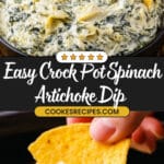 This creamy Crock Pot Spinach Artichoke Dip is the perfect warm appetizer, blending fresh spinach, artichoke hearts, cream cheese, sour cream, and cheeses into a luscious, crowd-pleasing dip. Slow-cooked to perfection, it’s ideal for parties and gatherings served with crackers or chips.