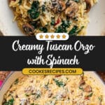 I’ve had great luck serving this Creamy Tuscan Orzo Recipe in individual-sized bowls topped with microgreens for a restaurant vibe at dinner parties. For a cozy family meal, I sometimes dollop a spoonful into hollowed-out bell peppers or tomatoes—both delicious and visually appealing!