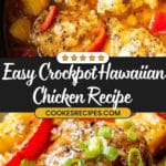 This Crockpot Hawaiian Chicken recipe delivers tender, flavorful chicken thighs slow-cooked with pineapple, bell peppers, onion, and a sweet-savory sauce made with soy sauce, honey, and spices. The easy-to-follow slow cooker method yields a rich, thickened sauce perfect for serving over rice or vegetables, making it a delicious and effortless meal with a tropical twist.
