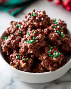 - Decorate with sprinkles: While the candies are still wet, generously sprinkle the tops with red, white, and green holiday sprinkles for festive decoration.