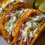 These Dill Pickle Ranch Smash Chicken Tacos combine tender ground chicken seasoned with smoky paprika and garlic powder, topped with tangy dill pickles, crisp shredded cabbage, and a zesty cottage cheese ranch drizzle. Crispy cheese laces add a delightful crunch, making this taco recipe a fresh and flavorful twist on a classic favorite, perfect for an easy weeknight meal.