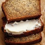 - Cool and Serve: Remove the banana bread from the oven and allow it to cool completely in the pan. Once cooled, gently lift the bread out using the parchment paper, slice, and serve.