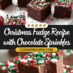 This easy Christmas Fudge recipe is a quick and delicious treat perfect for holiday celebrations. Made with creamy sweetened condensed milk, rich semi-sweet chocolate chips, butter, and vanilla extract, it is topped with festive Christmas sprinkles and set to chill until firm. It’s melt-in-your-mouth decadent fudge that anyone can make with just a microwave and minimal prep time.
