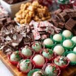 - Decorate: Immediately sprinkle the Christmas colored M&M’s, along with sprinkles and nonpareils, evenly over the white chocolate layer to create a festive look.