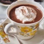- Serve: Pour the hot chocolate into small tea or cappuccino cups and serve immediately. Optionally, top with fresh whipped cream for extra indulgence.