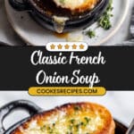 Classic French Onion Soup is a comforting and deeply flavorful soup featuring caramelized onions simmered in a rich beef broth, topped with toasted baguette slices and melted Gruyere cheese. This timeless French dish combines sweet, golden onions with savory broth and a cheesy, crispy finish for a perfect starter or main course.