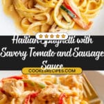 - Serve: Plate the spaghetti and garnish each serving with half a hard boiled egg. Serve immediately and enjoy the vibrant Haitian flavors.