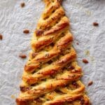 A festive and flavorful Savoury Puff Pastry Christmas Tree filled with creamy Boursin cheese, savory prosciutto, and melted cheddar, topped with mixed seeds for a delightful crunch. Perfect as a holiday appetizer or snack, this visually striking pastry twists into a Christmas tree shape and bakes to golden perfection.