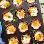 - Garnish and Serve: Remove the pan from the oven and sprinkle freshly chopped parsley over the egg cups for a burst of color and freshness. Use a large spoon to carefully lift each ham and egg cup from the pan and serve immediately.