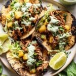 These Hawaiian Chicken Tacos with Jalapeño Pineapple Salsa combine tender, flavorful chicken cooked in a spicy-sweet tamari and pineapple sauce, topped with a fresh pineapple cilantro salsa and a creamy jalapeño basil ranch. Perfect for a quick and vibrant weeknight meal, these tacos burst with tropical and spicy flavors that bring a taste of the islands to your table.