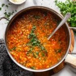 Italian Lentil Soup (Zuppa di Lenticchie) is a hearty and flavorful vegetarian soup featuring brown lentils simmered with aromatic vegetables, crushed tomatoes, and herbs. Enriched with the subtle umami of a Parmesan rind and finished with fresh parsley and a drizzle of extra virgin olive oil, this comforting soup is perfect for a nutritious meal any day.
