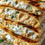This High-Protein Chicken Ranch Quesadilla is a quick, flavorful meal perfect for a satisfying lunch or dinner. Combining tender shredded rotisserie chicken with creamy Greek yogurt, cheesy Laughing Cow wedges, and melty mozzarella, all seasoned with ranch spices and wrapped in a low-carb tortilla, then pan-fried to golden perfection. It delivers a crispy exterior with a creamy, cheesy filling, ideal for those seeking a protein-packed comfort food.