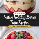 If you’re looking for a show-stopping dessert that’s as beautiful as it is delicious, you HAVE to try this Holiday Berry Trifle Recipe. I absolutely love how this trifle layers vibrant berries, fluffy sponge cake, and silky white chocolate custard—all crowned with luscious mascarpone cream. It’s a festive crowd-pleaser that’s easier to pull together than you might think, and trust me, once you make it, ending your holiday feast with this will be your new favorite tradition.