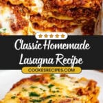 This Best Homemade Lasagna recipe combines savory Italian sausage, lean ground beef, and a rich tomato sauce layered with creamy ricotta, mozzarella, and Parmesan cheeses. Simmered to develop deep flavors and baked to perfection, this lasagna is a classic comfort food that serves a crowd and makes an ideal meal for family dinners or special occasions.