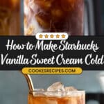 This recipe is best enjoyed cold, but if you prefer a warm vanilla coffee, just heat the cold brew gently on the stove or microwave until warm—avoid boiling, as it can alter the flavor—and add warmed vanilla sweet cream for a cozy treat.