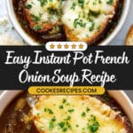 A classic and comforting Instant Pot French Onion Soup featuring caramelized onions, rich beef broth, red wine, and topped with toasted baguette slices and melted Gruyere cheese. This recipe provides a quick and easy way to enjoy a traditional French dish with the convenience of pressure cooking.